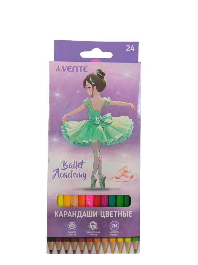 Карандаши цветные "deVENTE. Ballet Academy" 24 цвета, 2М, диаметр грифеля 2,8 мм, шестигранные, в картонной коробке