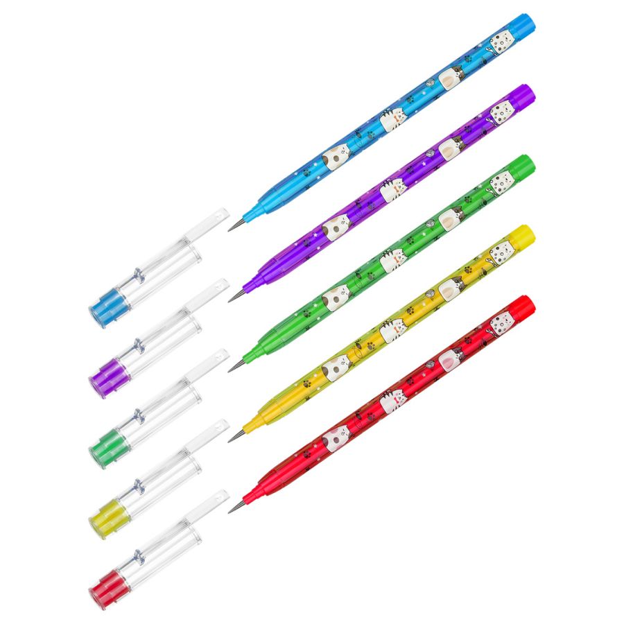 Карандаш чернографитный сегментный «День кота» удобен для школьников, особенно младших классов. Сегмент можно быстро заменить на новый. Пластиковый корпус круглой формы диаметром 0,8 см и длиной 14 см дополнен яркими изображениями. Степень твердости HB (твердо-мягкий). На колпачке есть ластик. В красочном дисплей-боксе 50 штук пяти различных цветов корпуса.