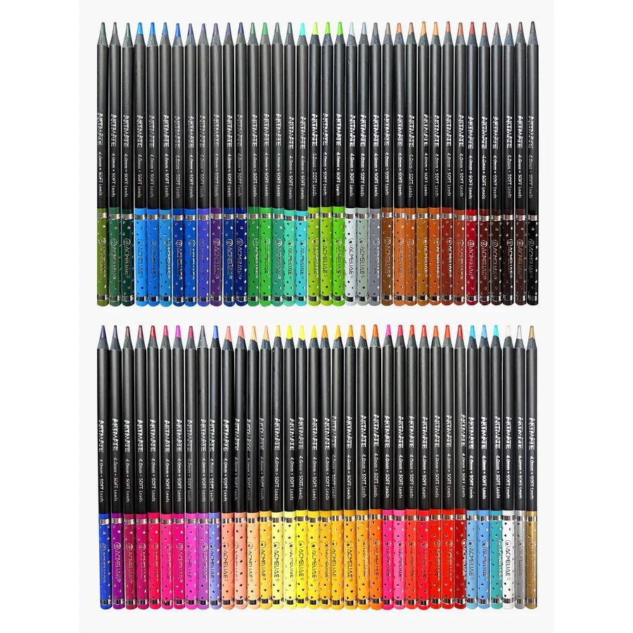 Набор качественных цветных карандашей для рисования и художественного творчества (живописи) серии ARTMATE. 72 ярких насыщенных цвета с хорошей покрывающей способностью. Мягкий грифель диаметром 4мм легко наносится, хорошо подходит для тушевки, штриховки. Позволяет добиться насыщенности цвета и плавного перехода от одного цвета к другому. Ударопрочный утолщенный грифель. Специальная проклейка грифеля для максимальной стойкости к поломкам - L.B.S. (связующая система грифеля). Яркие красивые натуральные цвета не размываются водой, не выцветают, рисунки получаются живые, надолго сохраняют яркость. Круглый деревянный корпус ровно и аккуратно затачивается. Длина карандаша 175мм. Качество карандашей Acmeliae соответствует международному стандарту качества AQL System, европейским стандартам EN71и REACH (отсутствие вредных веществ). Многослойное лаковое покрытие – идеальный внешний вид карандашей. Корпус – черное дерево, липа. Запаянный верх. Можно использовать для подарка. Экологичны: используется древесина сертифицированных и специально подготовленных лесов. Карандаши подойдут для школы, художественной школы, школьников, студентов, любителей и профессиональных художников. Станут хорошим подарком на Новый год, День рождения, 8 марта, день святого Валентина, 23 февраля, 1 сентября.