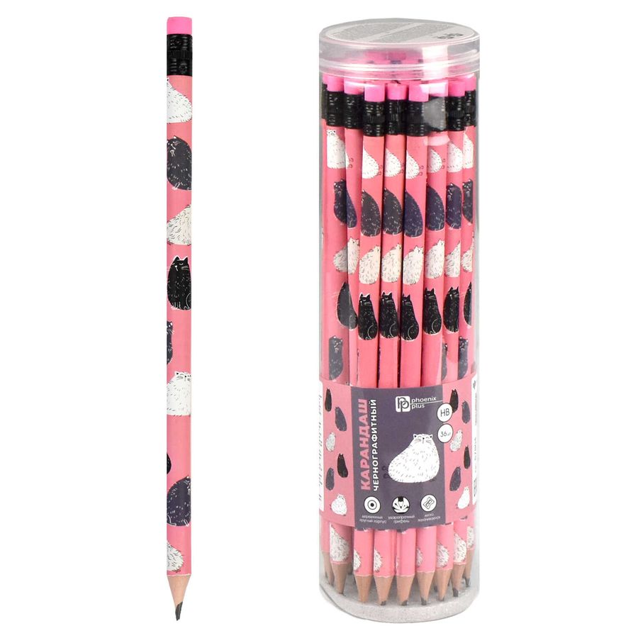 Карандаш чернографитный арт. 67804 / 36 КОТИКИ (ПЭТ-тубус, 36 шт., ассорти, твердость грифеля: HB, размер: 188*7,5 мм, форма корпуса: круглая, материал корпуса: светлое дерево, покрытие корпуса: матовое прозрачное, цвет корпуса: розовый, отделка: полноцветная печать, наличие ластика: Да, диаметр грифеля: 2 мм, заточено: Да