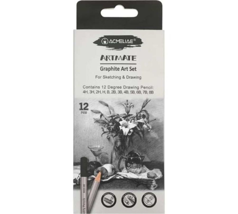 Набор карандашей для черчения твердо-мягких в 12 твердостях: 4H, 3H, 2H, H, B, 2B, 3B, 4B, 5B, 6B, 7B, 8B. Диаметр грифеля от 2 до 3,5мм в зависимости от твердости карандаша. Высокое качество рисования, эскизов, набросков, скетчей, чертежей любой сложности. Профессиональный проклейка грифеля предотвращает его поломки при падении и затачивании. Однородный грифель карандаша не царапает бумагу, оставляет четкие яркие линии, не крошится, затачивается до нужной остроты. Шестигранный корпус легкий, удобно лежит в руке, пальцы не скользят – можно работать без усталости. Корпус из высококачественной древесины ровно и аккуратно затачивается стандартными точилками, не меняет цвет, упругость, не трескается. Длина корпуса 178мм. Матовая бархатистая лакированная поверхность, серебристый корпус, запаянный верх. Заточенные. Художественные профессиональные карандаши подойдут для студентов вузов, инженеров, художников, архитекторов, чертежников, дизайнеров, художественных студий, школ, колледжей, школьников.