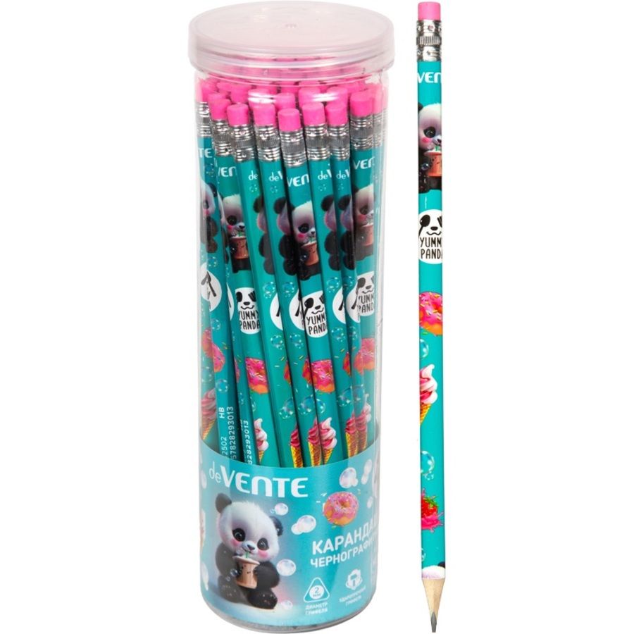 Карандаш чернографитный "deVENTE. Yummy Panda" HB, диаметр грифеля 2 мм, трёхгранный, с ластиком, заточенный, индивидуальная маркировка, в пластиковой тубе