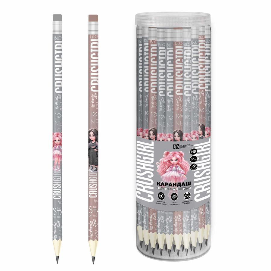 Карандаш чернографитный арт. 70084 / 36 КРАСОТКА (ПЭТ-тубус, 36 шт., ассорти, твердость грифеля: HB, размер: 188*7,5 мм, форма корпуса: круглая, материал корпуса: светлое дерево, покрытие корпуса: гля