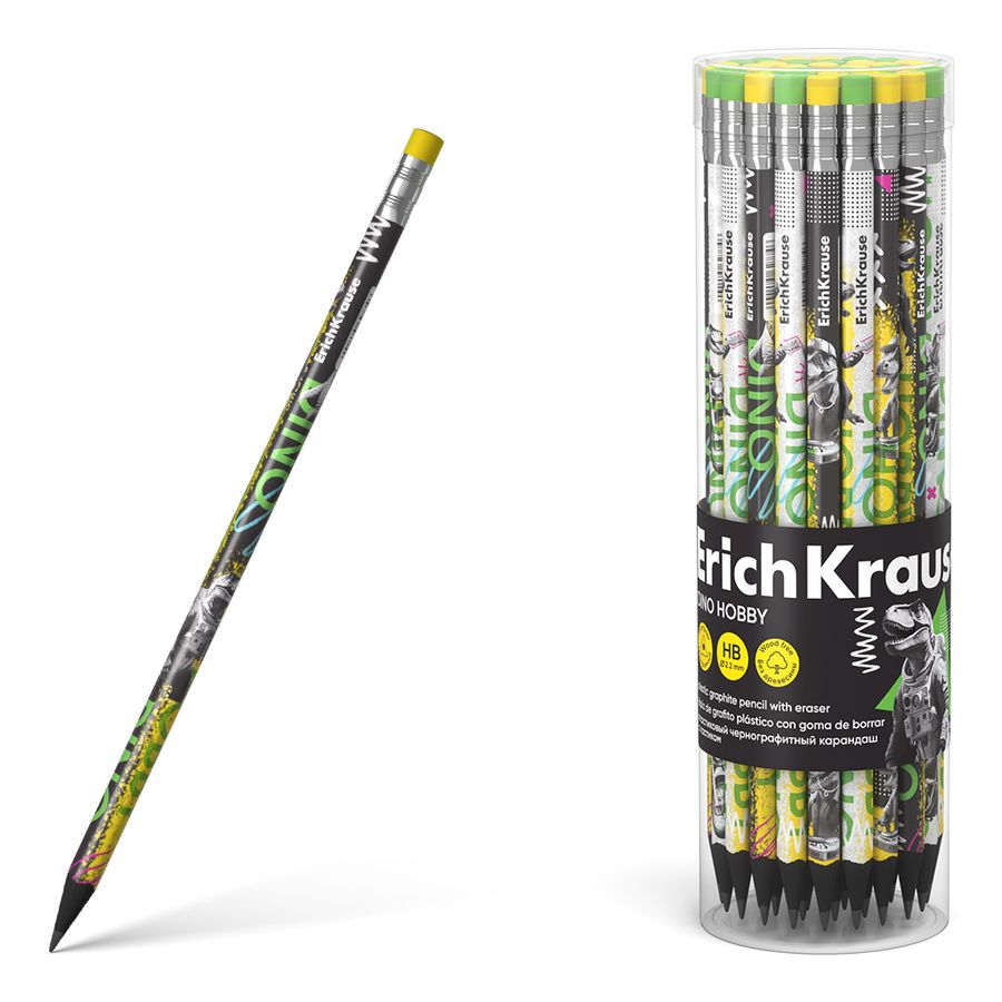 Чернографитный трехгранный карандаш из пластика с ударопрочным грифелем, твёрдость HB. Благодаря специальной технологии изготовления карандаша методом экструзии грифель надежно фиксируется к корпусу. Идеальная центровка грифеля гарантирует легкую заточку с экономным расходом карандаша. Грифель диаметром 2.2 мм не царапает бумагу и не крошится при рисовании. Ластик карандаша средней жесткости изготовлен из экологически чистого и гипоаллергенного материала термопластичной резины (TPR). Не содержит ПВХ. Длина 188 мм.