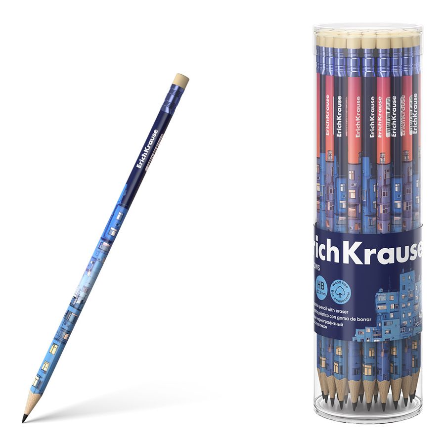 Карандаш чернографитный HB Windows трехгранный пластик рисунок с ластиком тубус ERICH KRAUSE 62777