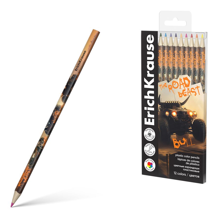 Пластиковые цветные карандаши ErichKrause представлены широкой палитрой оттенков, которые позволяют создавать яркие реалистичные рисунки. Супермягкий грифель. Регулируя силу нажима, можно контролировать насыщенность оттенков и плавность перехода цветов. Специальная технология изготовления карандаша методом экструзии надежно фиксирует грифель к корпусу, что обеспечивает высокую ударопрочность. Идеальная центровка грифеля и пластичность материала карандаша гарантируют легкую заточку с экономным расходом карандаша. Грифель диаметром 3 мм не царапает бумагу, не крошится при рисовании и не ломается даже при сильном нажатии. Европейский сертификат качества (СЕ) гарантирует отсутствие в составе токсичных веществ.