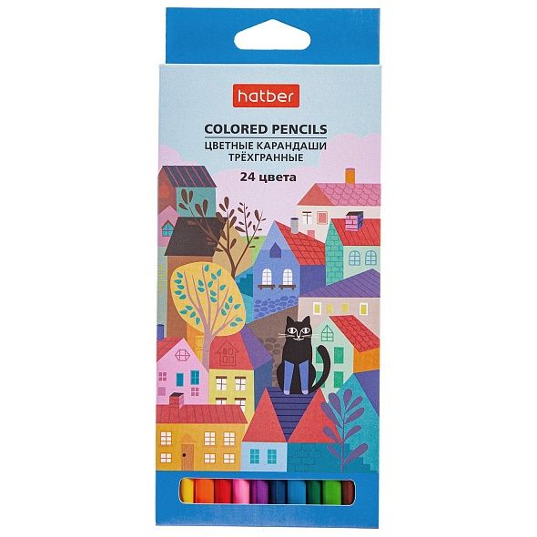Карандаши цветные 24цв 3-гран. дерево заточенные Городок карт.уп. HATBER CS_067699