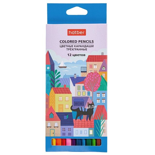 Карандаши цветные 12цв 3-гран. дерево заточенные Городок карт.уп. HATBER CS_067697