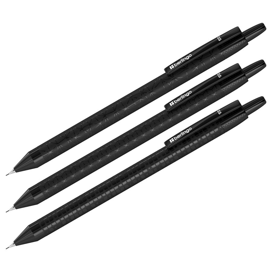Механический карандаш с дизайном стильной кросс-продуктовой серии DoubleBlack выглядит строго, но оригинально благодаря глянцевому узору на черном матовом фоне. Снабжён двумя запасными грифелями самого популярного диаметра 0,5 мм и встроенным ластиком. Подача грифеля осуществляется с помощью кнопочного механизма.