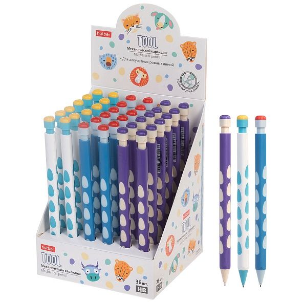 Механический карандаш треугольной формы. Оригинальный дизайн с выемками. Современная эргономика обеспечивает комфортное использование. Прочный, увеличенный грифель с диаметром 0,9 мм. Конструкция защитного наконечника надежно фиксирует грифель, уменьшая его ломкость. Не требует заточки. Разработан для комфортного рисования, письма и черчения.Диаметр грифеля - 0,9 мм. Упаковка: картонный дисплей 36 шт.