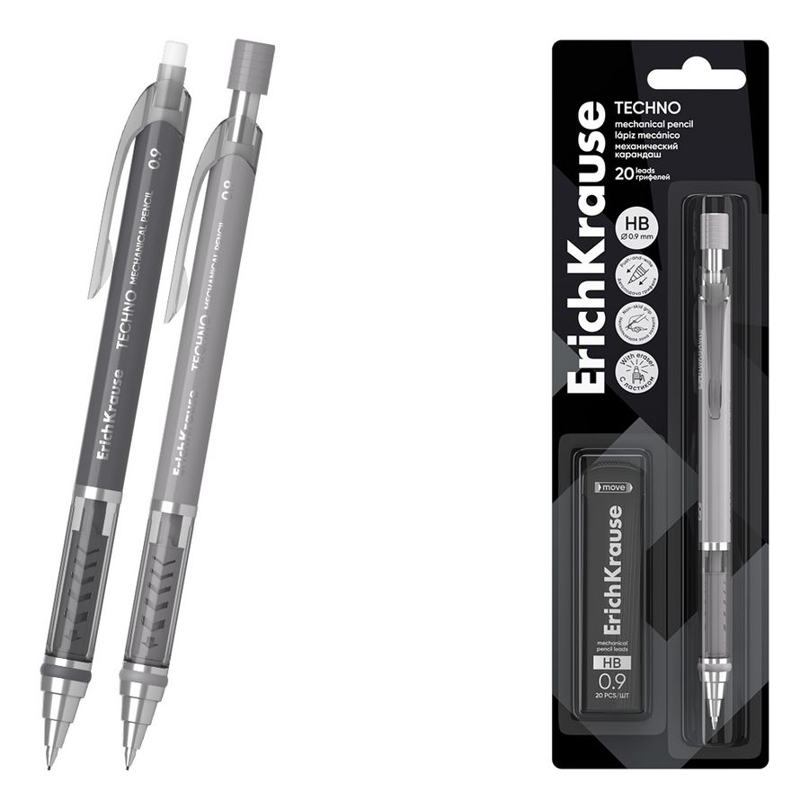 Механический карандаш круглой формы с профилированной зоной упора, металлической цангой и автоподачей грифеля. Корпус в двух цветах - темно графитовый и светло графитовый. Оснащен ластиком, закрывающимся колпачком и удобным полупрозрачным клипом. Твердость HB. Диаметр грифеля - 0.9 мм. В набор также 20 грифелей 0.9 мм.