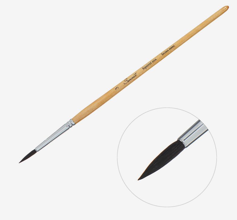 Кисть белка №3 круглая кор.ручка пропит.лаком Сонет СОНЕТ SONNET 211203