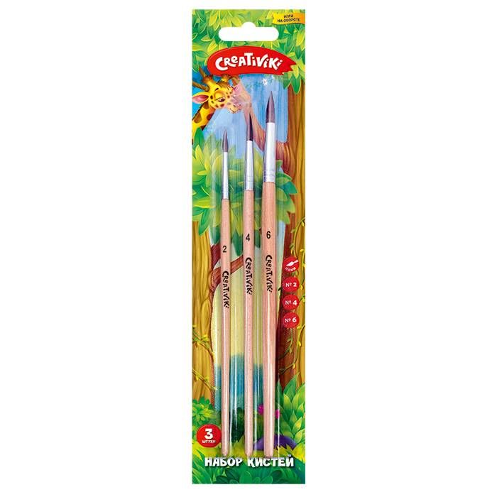 Набор базовых кистей, которые отлично подойдут для творчества маленьких креативиков. В наборе только самые популярные номера - 2, 4 и 6. Отличие этого набора от других аналогов в том, что есть настоящая 6-ка, а это значит, что ребенку будет гораздо легче закрасить небо, или нарисовать траву. Кроме того, на обороте вас ждет сюрприз - головоломка.