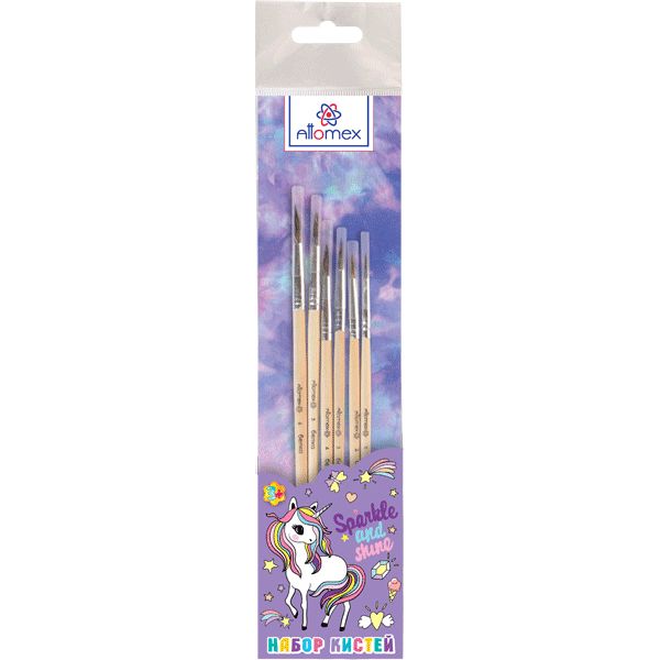 Набор кистей "Attomex. Unicorn" 06 шт (белка № 1, 2, 3, 4, 5, 6) деревянная ручка, в пластиковом блистере