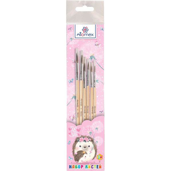 Набор кистей "Attomex. Ёжик" 06 шт (белка № 1, 2, 3, 4, 5, 6) деревянная ручка, в пластиковом блистере