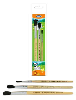 Набор кистей для рисования из натурального волоса. Черенки кистей с закругленным концом. Изготовлены из качественной древесины. Нержавеющая металлическая обойма без шва. Кисть хорошго держит форму и отлично подходит для детского творчества. Прозрачная упаковка с европодвесом.