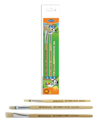 Набор кистей для рисования из натурального волоса. Черенки кистей с закругленным концом. Изготовлены из качественной древесины. Нержавеющая металлическая обойма без шва. Кисть хорошго держит форму и отлично подходит для детского творчества. Прозрачная упаковка с европодвесом.