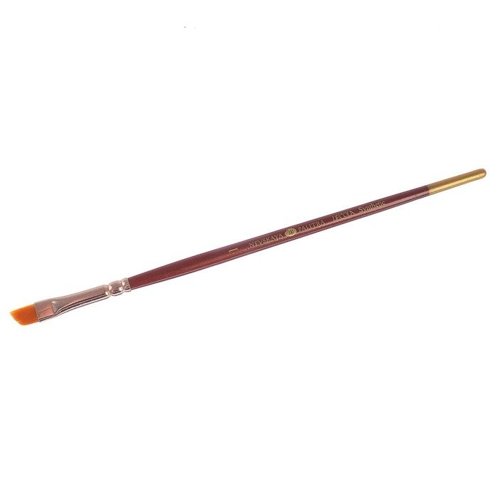Кисти из качественной синтетики, средней жесткости, отличаются высокой упругостью и эластичностью, универсальны в использовании – подходят для гуаши, масла и акрила. Средняя жесткость волоса гарантирует бережное отношение к декорируемой поверхности при использовании в хобби техниках, а густой волос позволяет удерживать большое количество краски или лака. Скошенные кисти используются для создания набросков и эскизов, позволяют проводить очень четкие линии, очерчивая острые углы. В зависимости от размера пучка могут применяться как для прорисовки мелких деталей, так и для заполнения крупных форм и фона. Такие кисти подходят для хобби техник, таких как - декупаж, роспись по ткани, батик, роспись по керамике и др. Обойма металлическая, хромированная, ручка короткая, пропитана лаком, окрашена цветом «темная медь». Серийно выпускаются: 1, 3, 5, 7.