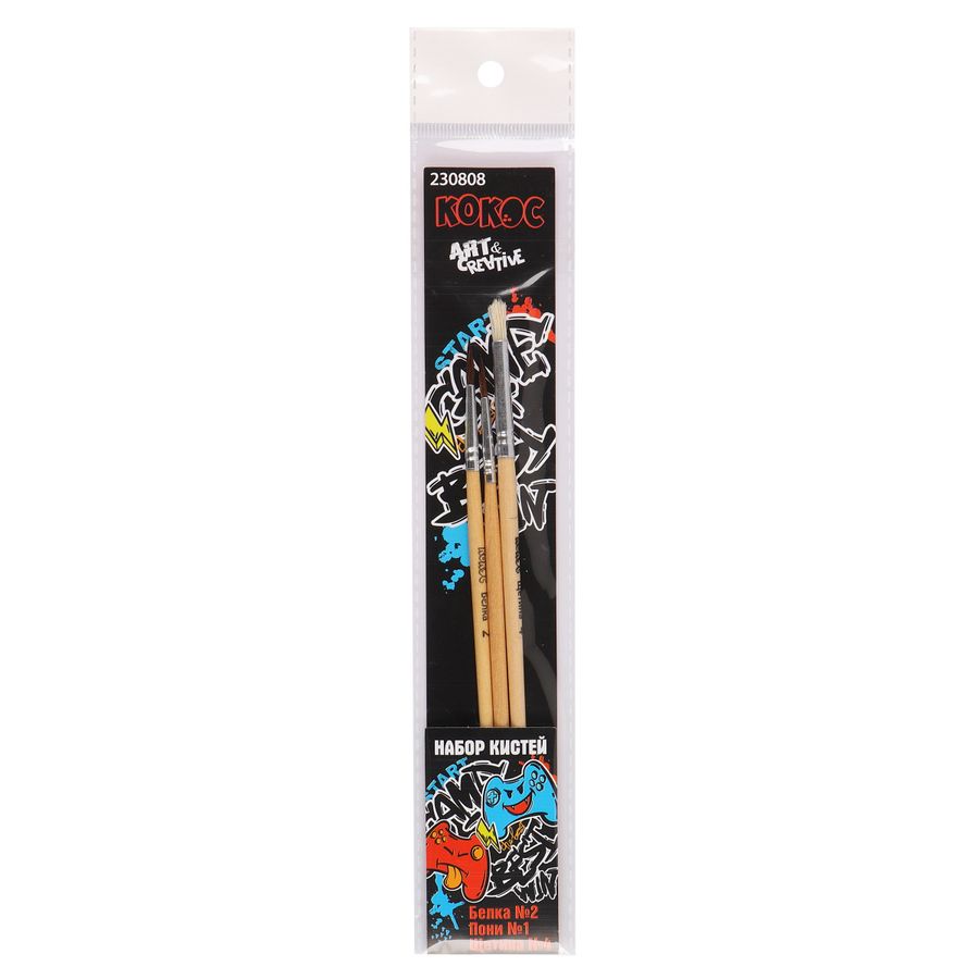 Кисть набор 3шт белка круглая №2 пони круглая №1 щетина круглая №4 Start Game Кокос 230808
