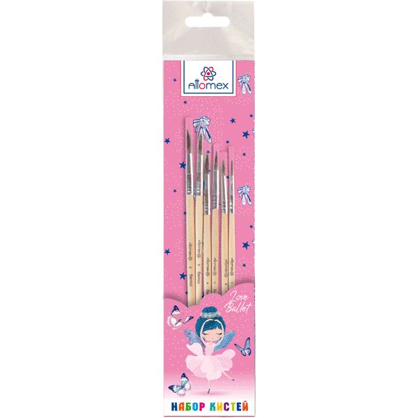 Набор кистей "Attomex. Ballet" 06 шт (белка № 1, 2, 3, 4, 5, 6) деревянная ручка, в пластиковом блистере
