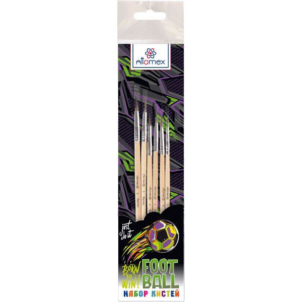 Набор кистей "Attomex. Football" 06 шт (белка № 1, 2, 3, 4, 5, 6) деревянная ручка, в пластиковом блистере