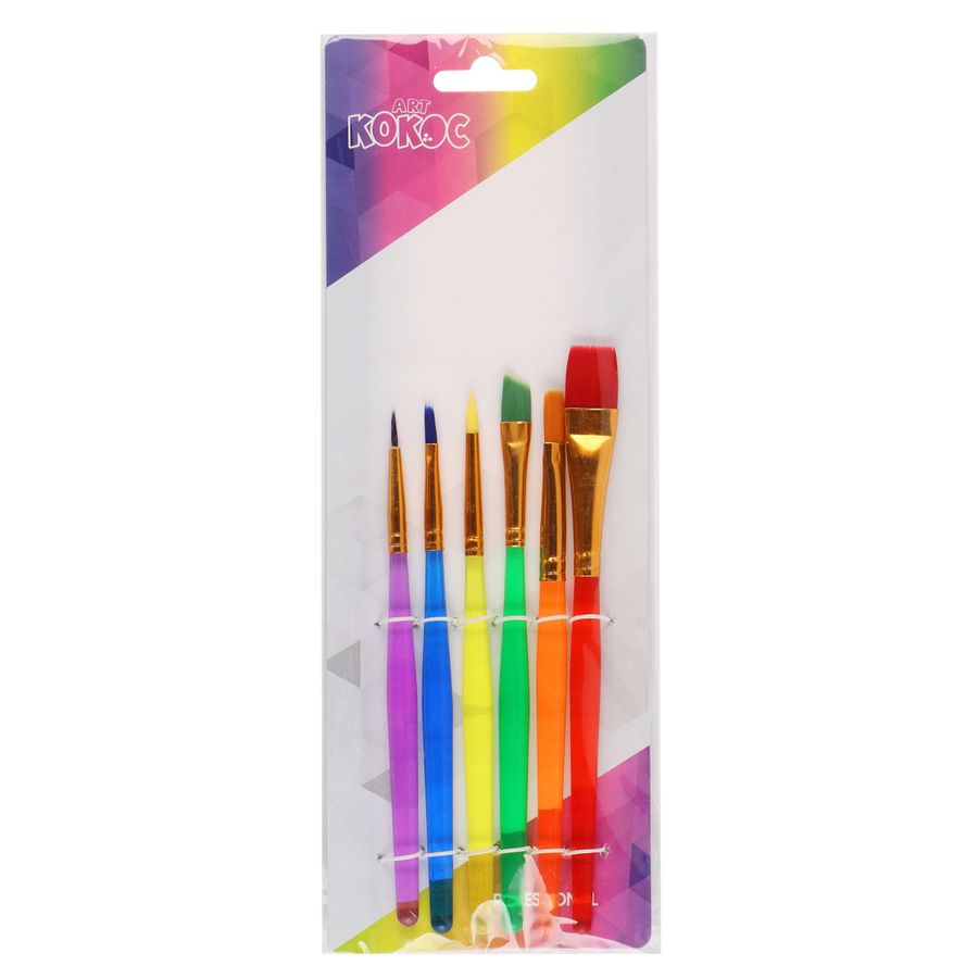 Кисть набор 6шт синтетика плоские, круглые Кокос 187656