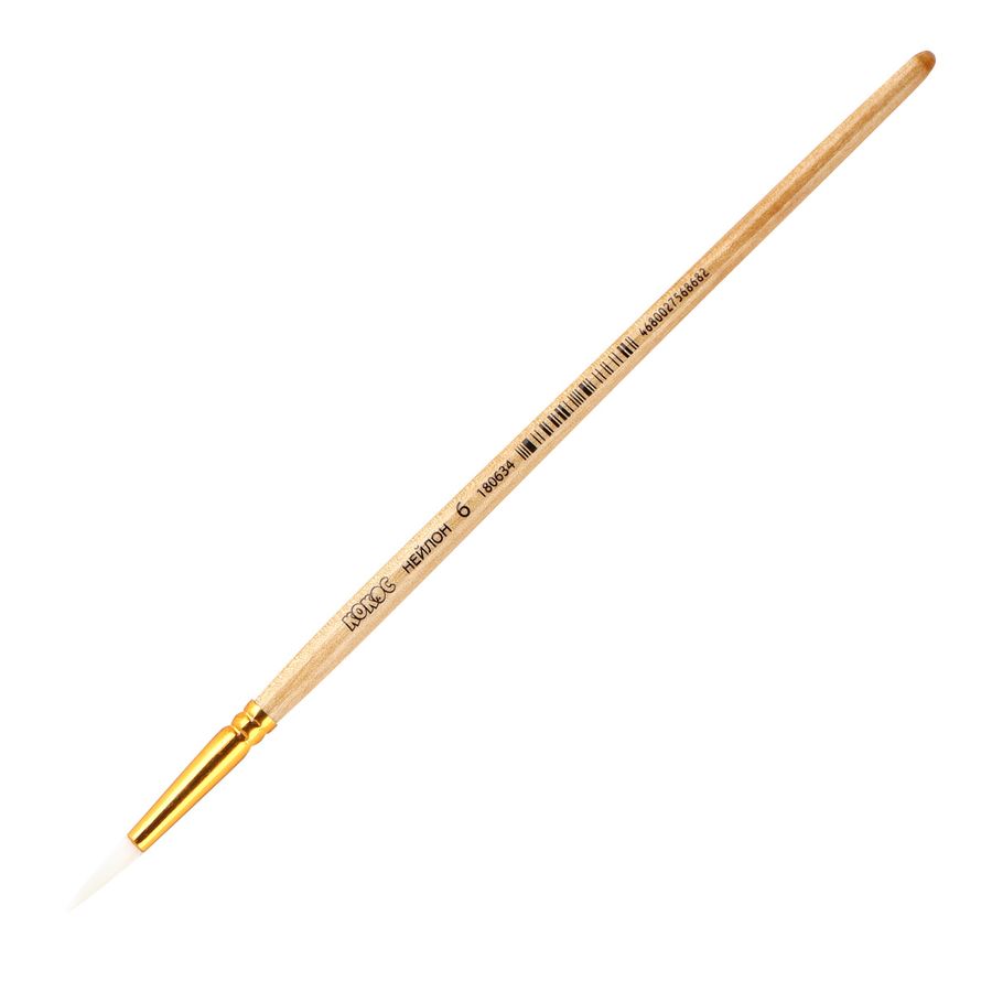 Кисть нейлон, круглая, №6, дерево КОКОС 180634