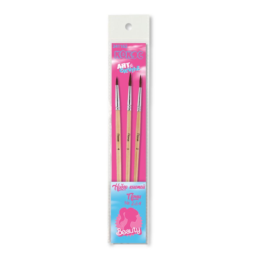 Набор кистей 3 шт, Пони №2,3,4 Beauty КОКОС 241162