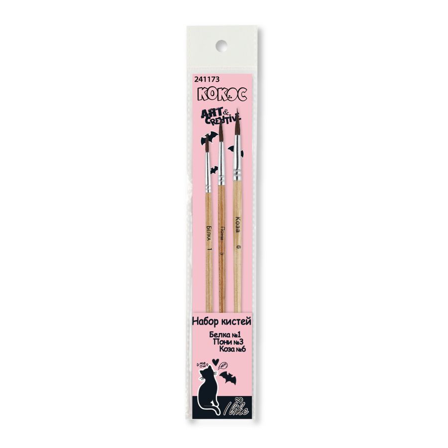 Кисть набор 3шт белка круглая №1 пони круглая №3 коза круглая №6 Cat secret Кокос 241173
