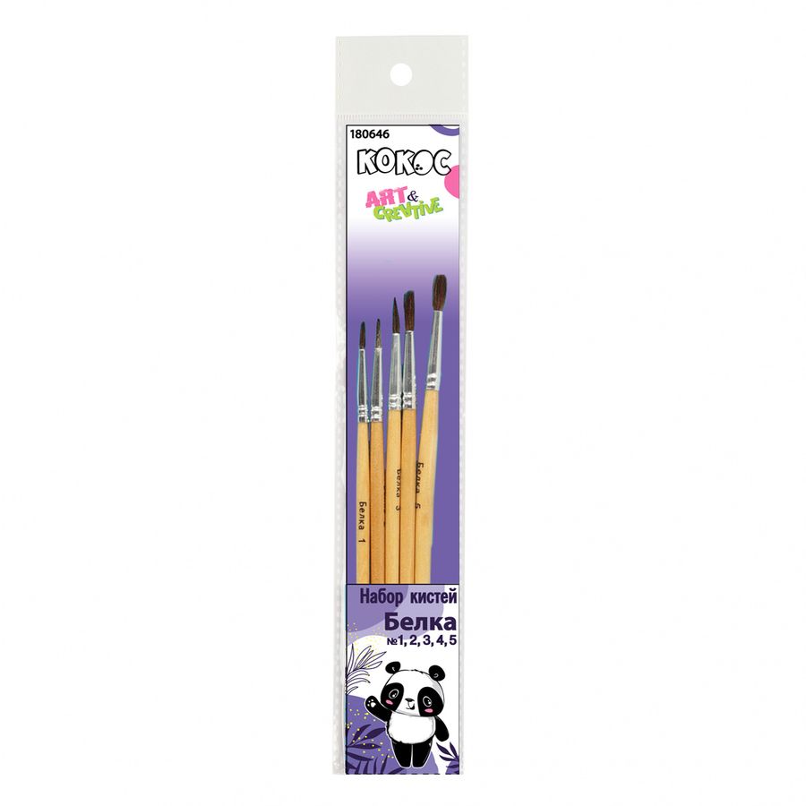 Набор кистей 5 шт, Белка круглые №1, 2, 3, 4, 5 КОКОС 180646
