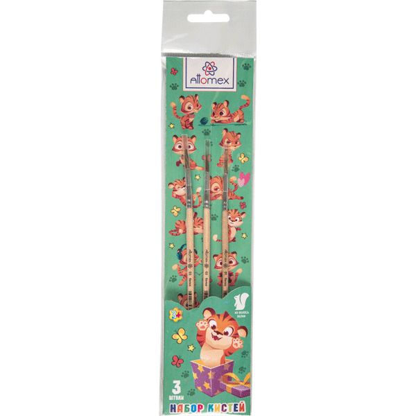 Набор кистей "Attomex" 03 шт (белка № 1, 2, 3) деревянная ручка, в пластиковом блистере