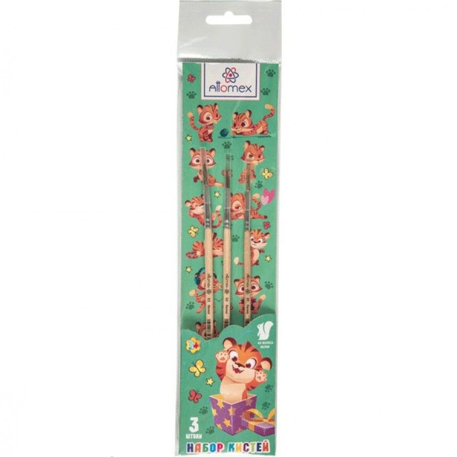 Набор кистей "Attomex" 03 шт (белка № 1, 2, 3) деревянная ручка, в пластиковом блистере