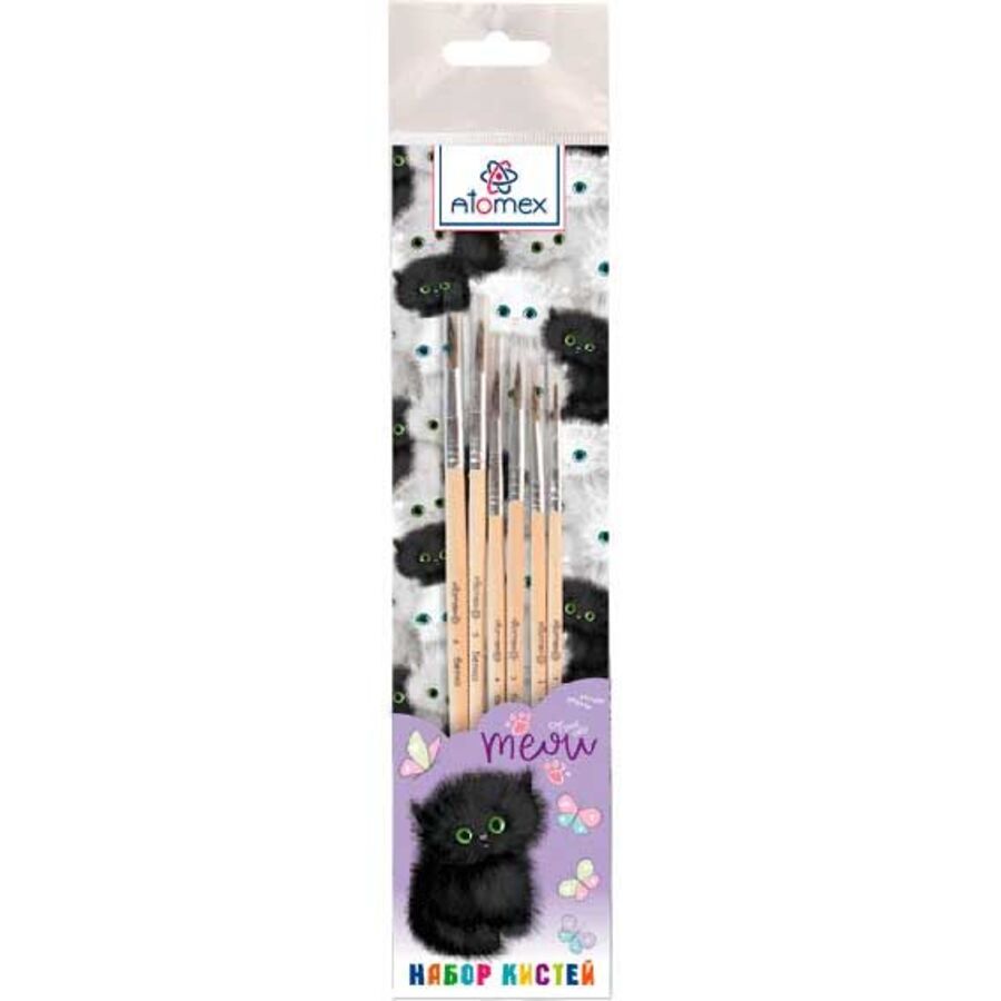 Кисть набор 6шт белка №1,2,3,4,5,6 Meow Cat блистер ATTOMEX 8072433