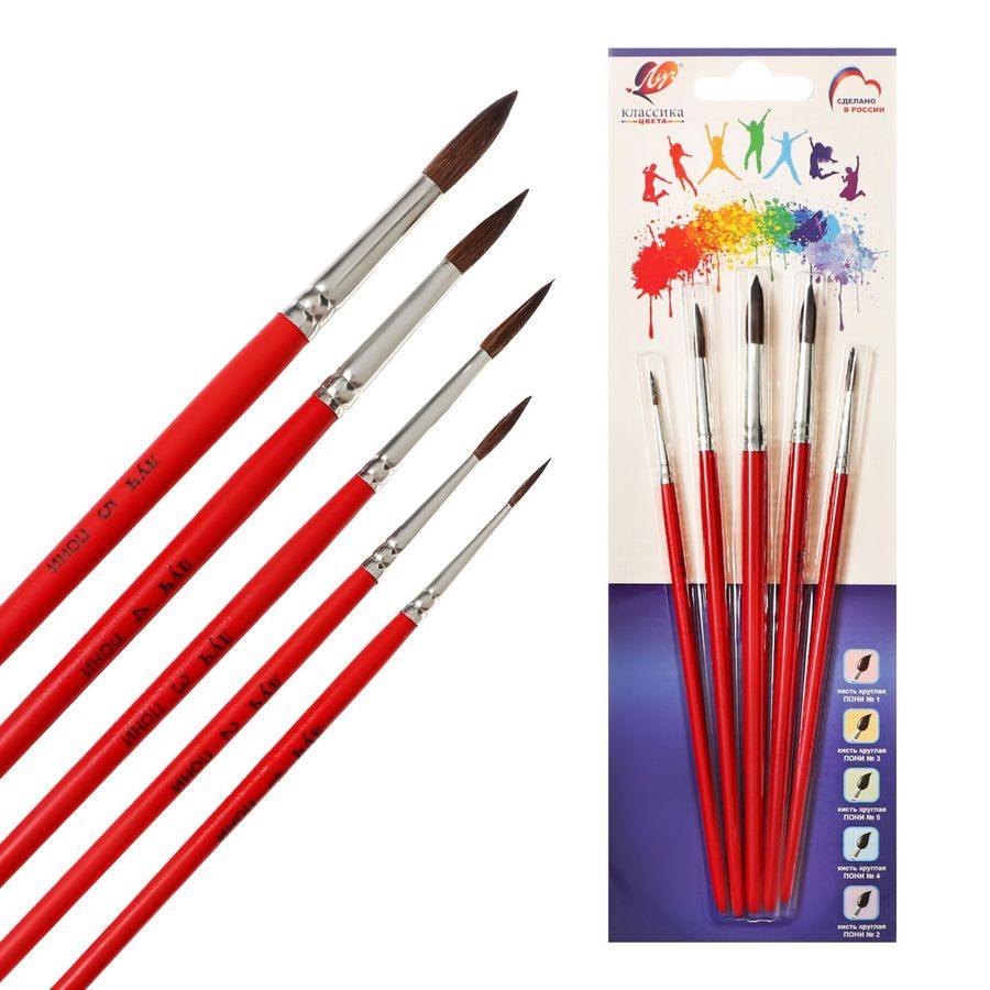 Кисти из волоса пони - самый распространенный вариант для творческих занятий с детьми. Они отлично подойдут для рисования акварелью и гуашью. Мягкий, но плотный волос хорошо впитывает краску и равномерно её отдаёт. Кисти с волосом пони помогут равномерно заполнить фон, нарисовать прямые линии и сделать плавные переходы от тонкой линии и широкой. Форма кисти собирается и выводится вручную. Деревянная ручка тщательно шлифована и пропитана безопасным составом. Кисть удобно и приятно держать в руке. Кисти предназначены для широкого круга потребителей. Ручка: натуральное дерево, пропитка, красный цвет. Обойма: металл, двойная обичайка для прочного соединения частей кисти. Упаковка: коррекс, красочная этикетка с европодвесом.