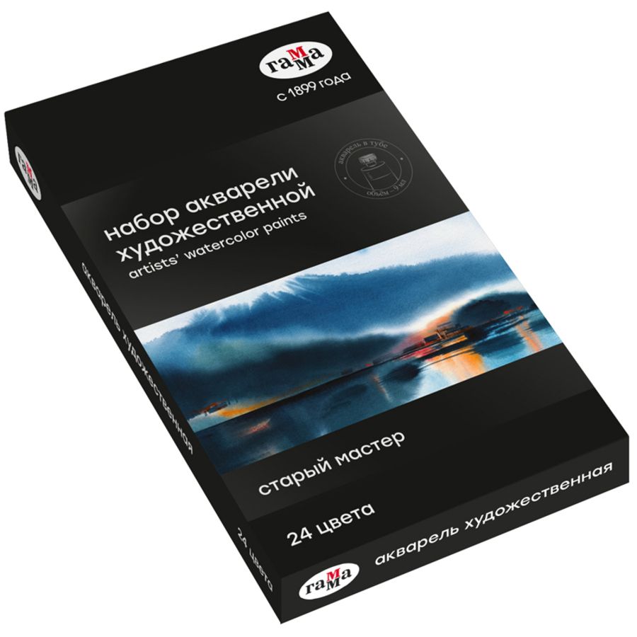 Профессиональная художественная акварель «ГАММА» серии «Старый мастер» разработана в собственной исследовательской лаборатории завода. Профессиональные краски состоят из тонкодисперсных пигментов, связующего, в состав которого входит раствор растительного клея - гуммиарабика высшей степени очистки, что обеспечивает насыщенность цветов, чистоту и прозрачность красочного слоя. Акварель «Старый мастер» изготавливается без использования дополнительных наполнителей, а многослойная заливка увеличивает долю пигмента. Краски обладают высоким уровнем светостойкости. С помощью акварельных красок «ГАММА» серии «Старый мастер» можно писать в различных техниках, например, - лессировка, по - мокрому, заливка, сухая кисть. На упаковке отображена информация о пигменте.Иллюстрация для упаковки предоставлена Анастасией Лобуз.