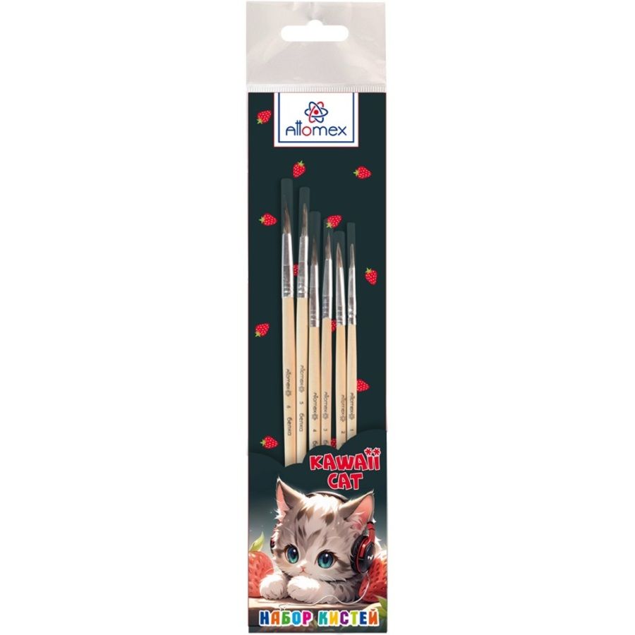 Набор кистей "Attomex. Kawaii Cat" 06 шт (белка № 1, 2, 3, 4, 5, 6) деревянная ручка, в пластиковом блистере