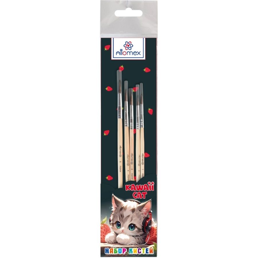 Набор кистей "Attomex. Kawaii Cat" 05 шт (пони № 1, 2, 3, 4, 5) деревянная ручка, в пластиковом блистере