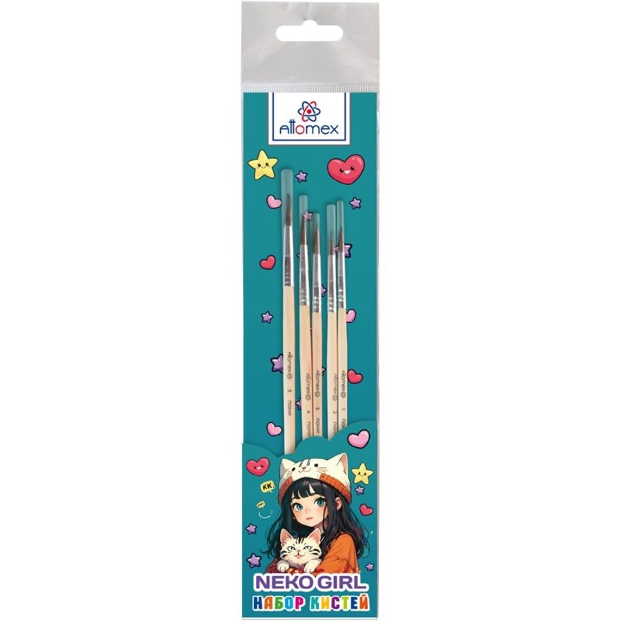 Набор кистей "Attomex. NekoGirl" 05 шт (пони № 1, 2, 3, 4, 5) деревянная ручка, в пластиковом блистере