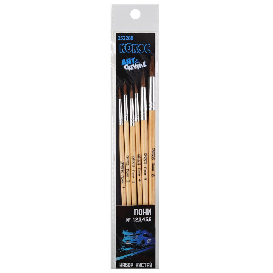 Кисть набор 6шт пони №1,2,3,4,5,6 круглые Speed Кокос 252288