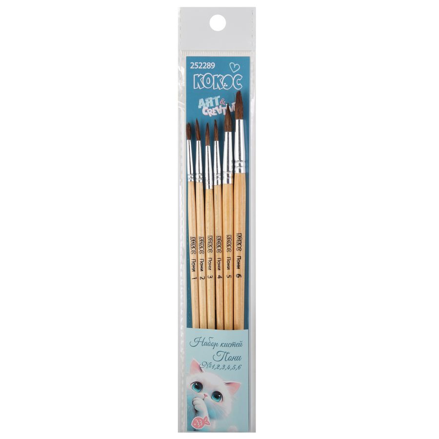 Кисть набор 6шт пони №1,2,3,4,5,6 круглые Пушистик Кокос 252289