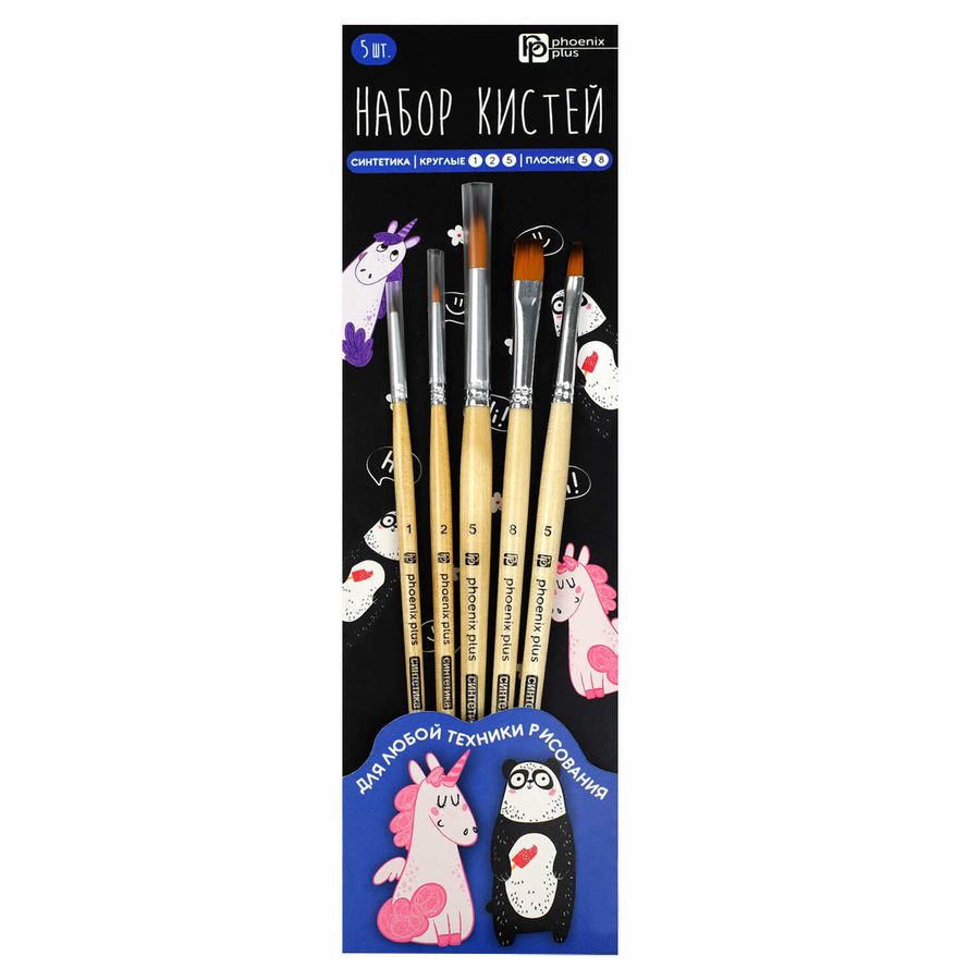 Набор художественных кистей арт. 66070 / 25 АРТ-БРАТВА (нейлон, 5 шт., круглые № 1, 2, 5; плоские № 5, 8 , материал ручки: древесина (береза), материал обоймы: алюминий, картонная подложка + ПЭТ-пакет).