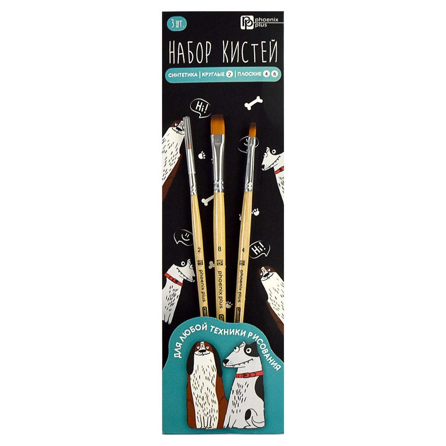 Набор художественных кистей арт. 66071 / 25 АРТ-БРАТВА (нейлон, 3 шт., круглая №2; плоские №4, 8, материал ручки: древесина (береза), материал обоймы: алюминий, картонная подложка + ПЭТ-пакет).