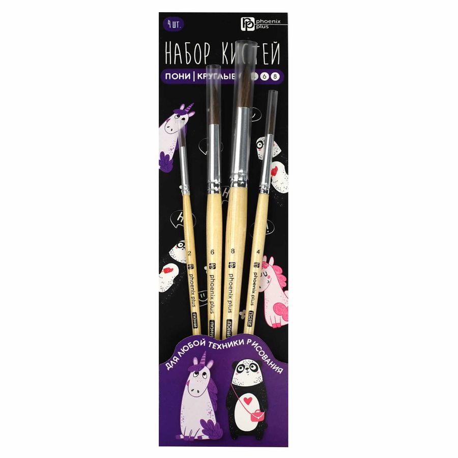 Набор художественных кистей арт. 66073 / 25 АРТ-БРАТВА (пони, 4 шт., круглые № 2, 4, 6, 8, материал ручки: древесина (береза), материал обоймы: алюминий, картонная подложка + ПЭТ-пакет).