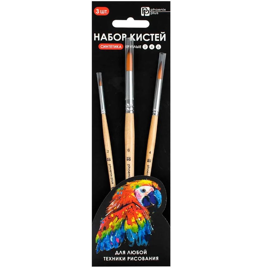 Набор художественных кистей арт. 71456 / 25 ПОПУГАЙ (нейлон, 3 шт., круглые № 2, 4, 6, материал ручки: древесина (береза), материал обоймы: алюминий, картонная подложка + ПЭТ-пакет).