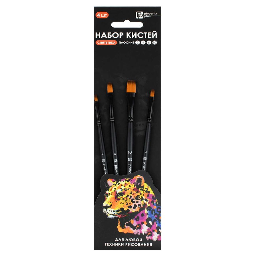 Набор художественных кистей арт. 71457 / 25 ГЕПАРД (нейлон, 4 шт., плоские № 2, 4, 6, 10, материал ручки: древесина (береза), материал обоймы: алюминий, картонная подложка + ПЭТ-пакет).