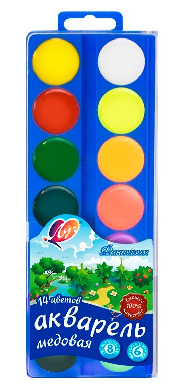 Новый набор акварельных красок "Фантазия" станет замечательным подарком для детей дошкольного и школьного возраста, которые не ограничивают свою фантазию и используют в творчестве разнообразные материалы и техники. Набор акварели "Фантазия" включает в себя краски классических(8) и флуоресцентных (6) цветов. Краски розлиты в донышко синего цвета. Набор имеет европодвес.