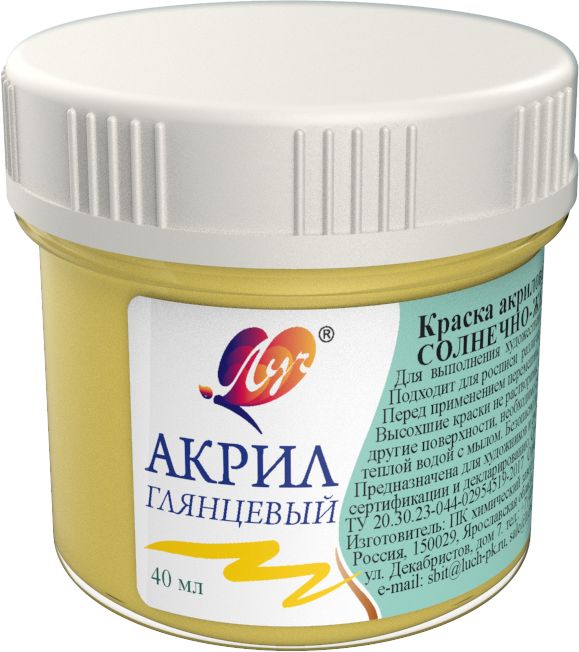 Акриловые краски ультрамодных пастельных цветов предназначены для работы в технике свободной росписи или художественного декорирования с использованием трафаретов. Густая консистенция препятствует растеканию краски и обеспечивает ее равномерное распределение плотным слоем. После высыхания краски образуют прочную глянцевую поверхность, которая не пачкается и не смывается водой. Крышка идеально раскручивается и закручивается. Удобные герметичные баночки идеально предотвращают краску от высыхания. Срок службы 3 года. Состав: водная акриловая дисперсия, пигменты, консервант. Цвет краски: солнечно-желтый пастельный. Упаковка: пластиковая баночка с винтовой крышкой объемом 40 мл.