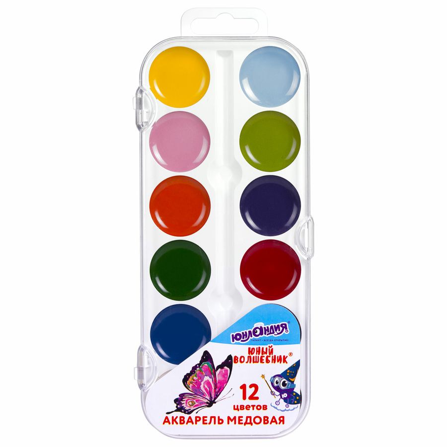 Акварельные краски ЮНЛАНДИЯ идеально подходят для уроков детского творчества и художественного изобразительного искусства. Рисование способствует развитию образного мышления, глазомера, мелкой моторики рук, тонкого восприятия цветовой гаммы. 12 ярких насыщенных цветов отлично смешиваются между собой и позволяют создать множество оттенков, обеспечивают однородное окрашивание. Краски быстро высыхают и не портятся со временем. Безопасны для детей, нетоксичны. Выпускаются в пластиковом пенале с прозрачной крышкой, круглой формой кювет и отделением для кисточки. Упаковка обладает компактными размерами и легким весом. Рисование акварельными красками ЮНЛАНДИЯ "ЮНЫЙ ВОЛШЕБНИК" подарит детям хорошее настроение и возможность порадовать своих родителей первыми рисунками!