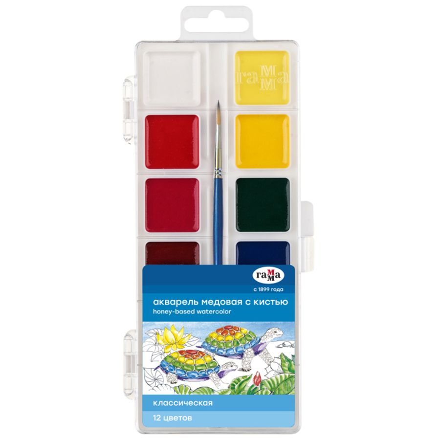 Акварель 12цв медовая с кистью пласт.уп. европодвес Классическая ГАММА 1009201