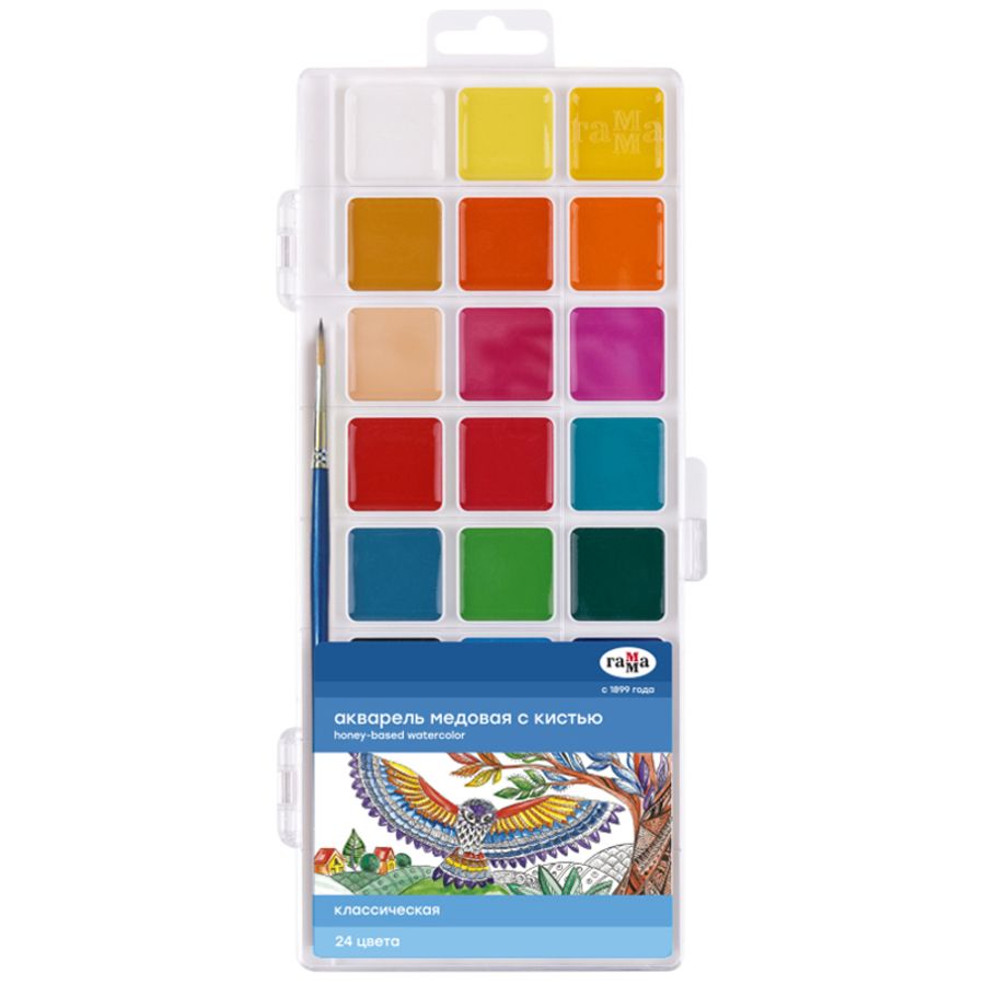 Медовая полусухая акварель серии "Классическая" разработана для использования в школе и дома. Естественные цвета акварели обучают правильному цветовосприятию окружающего мира. Краски изготовлены на основе органических пигментов и натурального связующего. Прозрачность красок, яркость и чистота цвета, разносимость и размываемость - основные характеристики акварели данной серии. Кюветы с высокими бортиками и увеличенным расстоянием между красками предназначены для удобства в работе детей. Палитра для смешивания красок расположена на крышке. Акварель легко смывается с рук и отстирывается с одежды. Объем кювет - 3,14 см3. Форма кювет - квадратная. Кисть в комплекте.